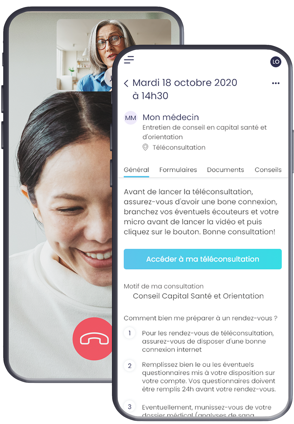 Vous avez des questions sur la procédure à suivre pour accéder à votre téléconsultation avec votre conseiller en capital santé ? Vous avez besoin d'aide pour accéder à votre téléconsultation ? Vous trouverez ci-dessous la liste des questions les plus fréquentes et la procédure pas-à-pas pour rejoindre votre conseiller en capital santé.
